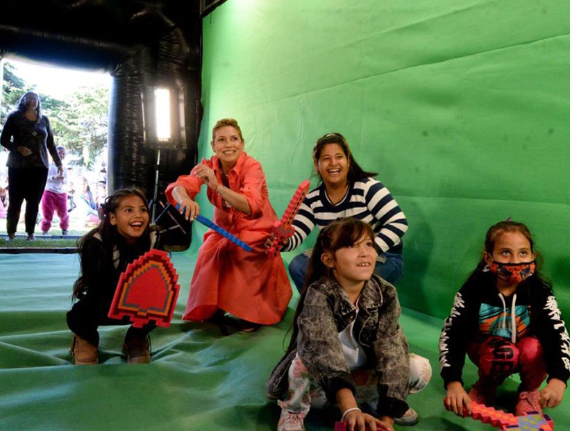 Como inicio de la actividad, el Instituto Nacional de Cine y Artes Audiovisuales (INCAA), armó un cine itinerante en donde les explicaron el funcionamiento de la institución y simularon estar en un set rodando una película.