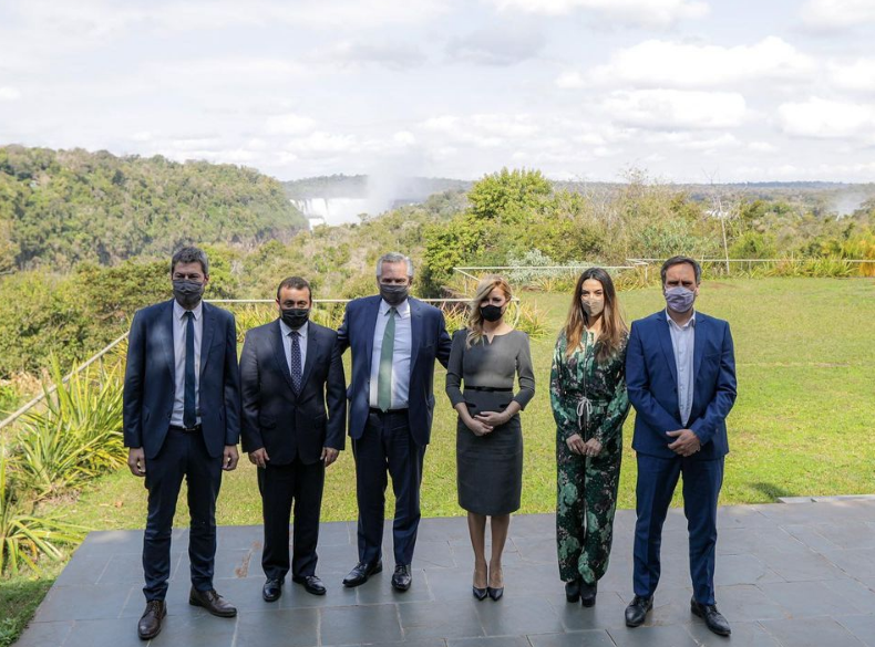 De confirmarse que Fabiola está en la dulce espera, esta foto tomada en el Parque Nacional Iguazú, podría ser la primera foto oficial del embarazo. En el centro de la foto se los ve al presidente Alberto Fernández y la Primera Dama que sostiene su panza.