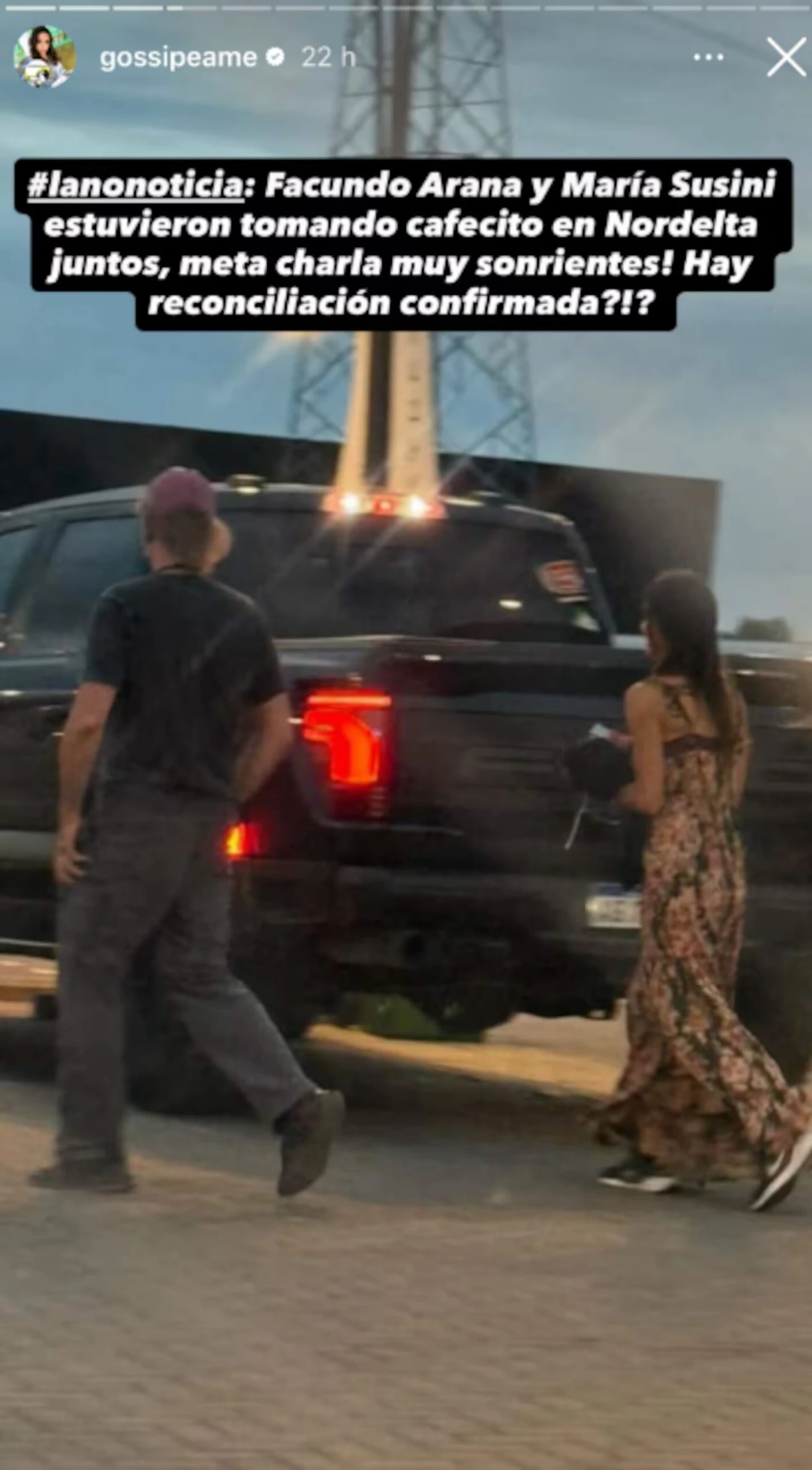 A varios meses de la confirmación de la separación de Facundo Arana y María Susini, ambos activaron las alarmas de un posible regreso. Todo ocurrió cuando el actor y la modelo habrían sido vistos a la salida de una cafetería donde habrían mantenido una larga charla. Desde la cuenta Gossipeame compartieron una imagen donde ambos se suben a una camioneta y se muestran relajados.