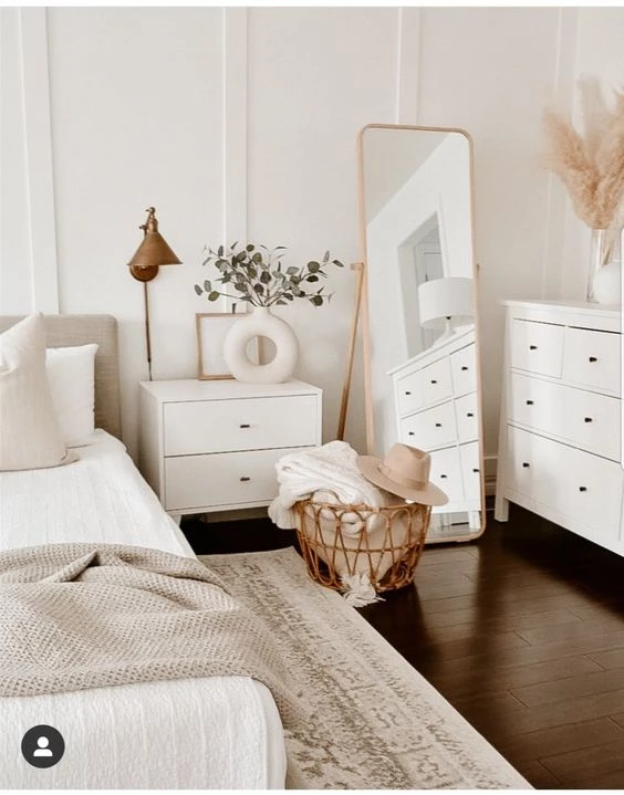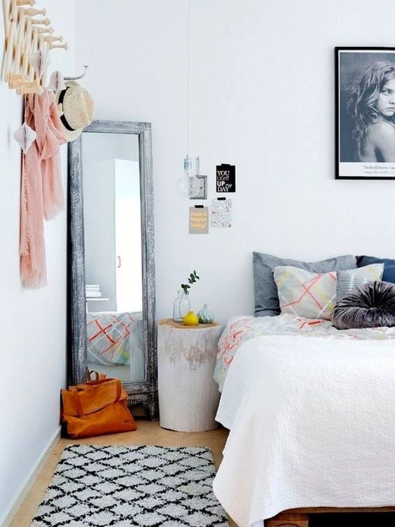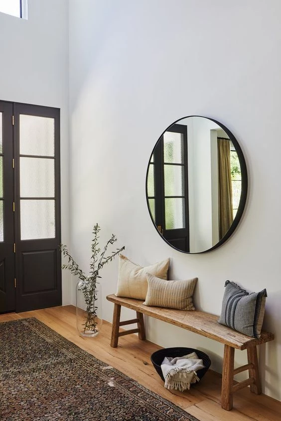 Si quieres un espejo, se recomienda ponerlo en un lateral, en una posición con forma de L con la puerta para que no queden enfrentado.