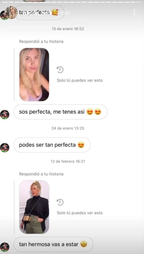 En las imágenes difundidas se podía ver un interés muy evidente del jugador hacia Wanda, debido a que había una constante insistencia en sus chats. "Sos perfecta, me tenés así", "¿Podés ser tan perfecta?", "¿Tan hermosa vas a estar?", se puede leer en estos mensajes, que nunca fueron respondidos por la mujer de Mauro Icardi.