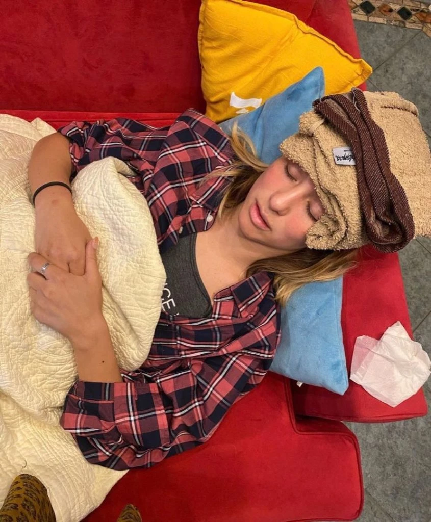 "Entre 38, 39 y 40 grados de fiebre me estuvieron tratando estos hermosos últios 3 días y hoy sigo de camita. Conocés a mi amigo SOMATIZAR? Te pasó? En qué situación?", escribió Flor Vigna en su Instagram con algunas fotos de ella enferma y en cama.