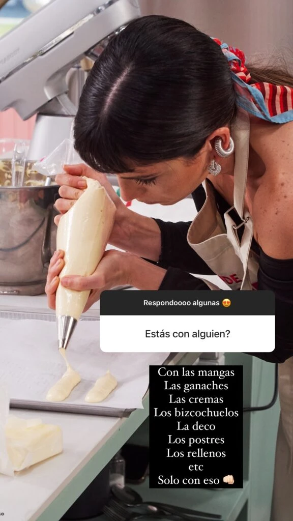 Frente a los rumores de un posible romance, Cande no dudó en aclarar las cosas y usar el humor como defensa. "¿Estás con alguien?", le preguntaron por medio de su red social Instagram, a lo que ella no dudó en responder. "Con las mangas, las ganaches, las cremas, los bizcochuelos, la deco, los postres, los rellenos, etc. Sólo con eso", fue su simpática contestación.