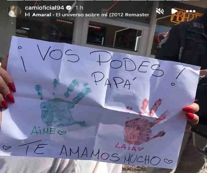 El sábado 14 de septiembre, Camila “Camilota” Deniz compartió en redes sociales un gesto que emocionó a todos: una hoja de papel con las huellas de las manos de Laia y Aimé. Cada una estaba pintada con un color distinto; rosa para Laia y verde para Aimé, acompañada de un mensaje para su papá: “¡Vos podés papá! Te amamos mucho”.