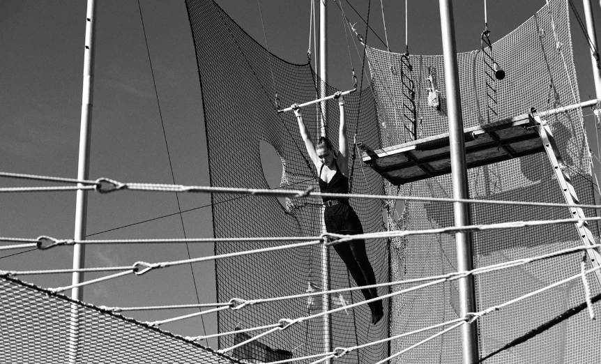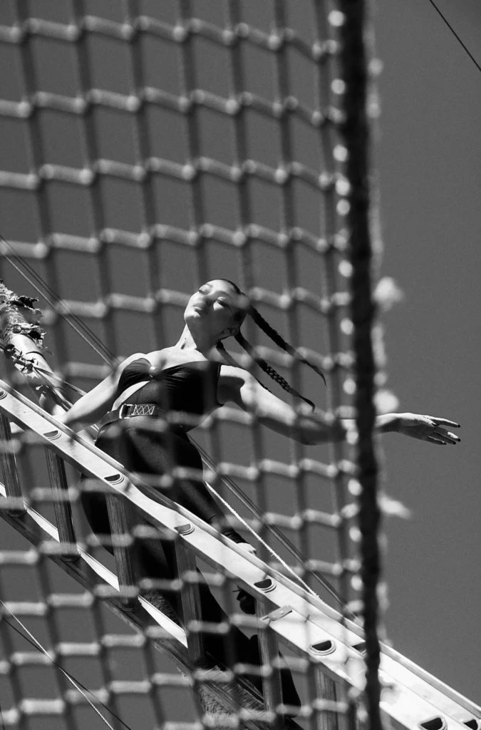 En una increíble sesión de fotos a cargo de Mario Sorrenti, la hermana de Bella se animó a mostrar sus habilidades como acróbata y regresar a sus viejas épocas como gimnasta. Tanto es así que pidió ser fotografiada mientras se colgaba de unos peligrosos trapecios.
