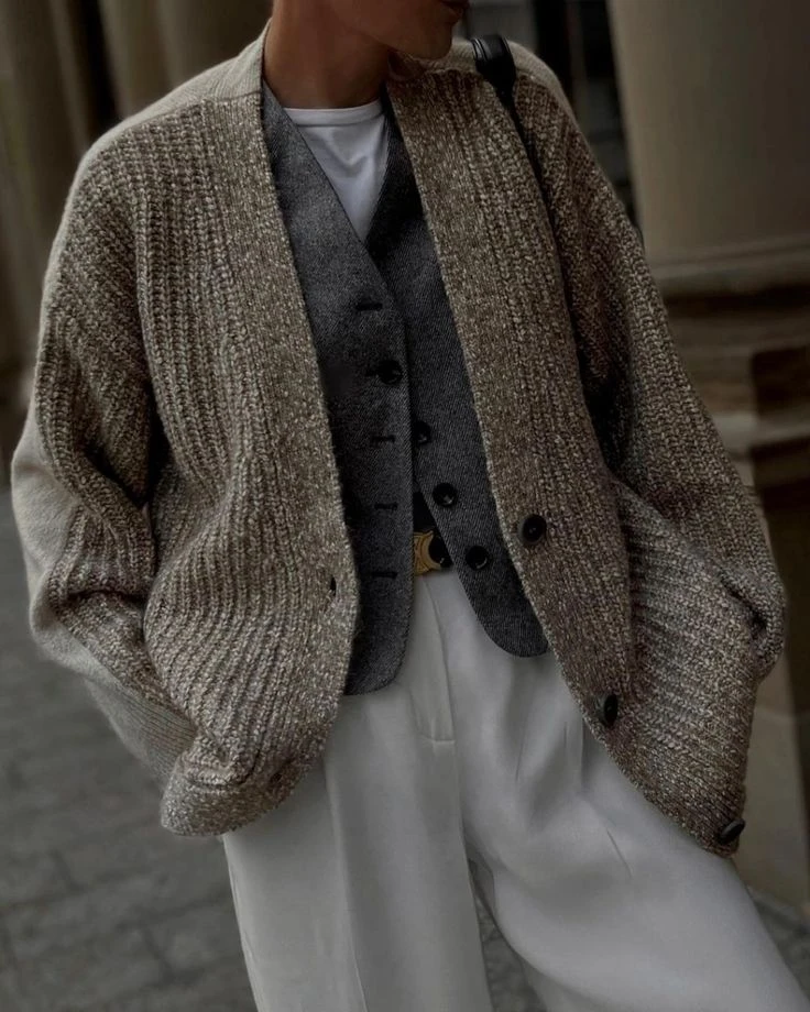 Un buen suéter siempre hay que tener, el cárdigan es un clásico del buen vestir que te acompaña en la media estación y en el alto invierno, así que es otra prenda a tener en cuenta.
