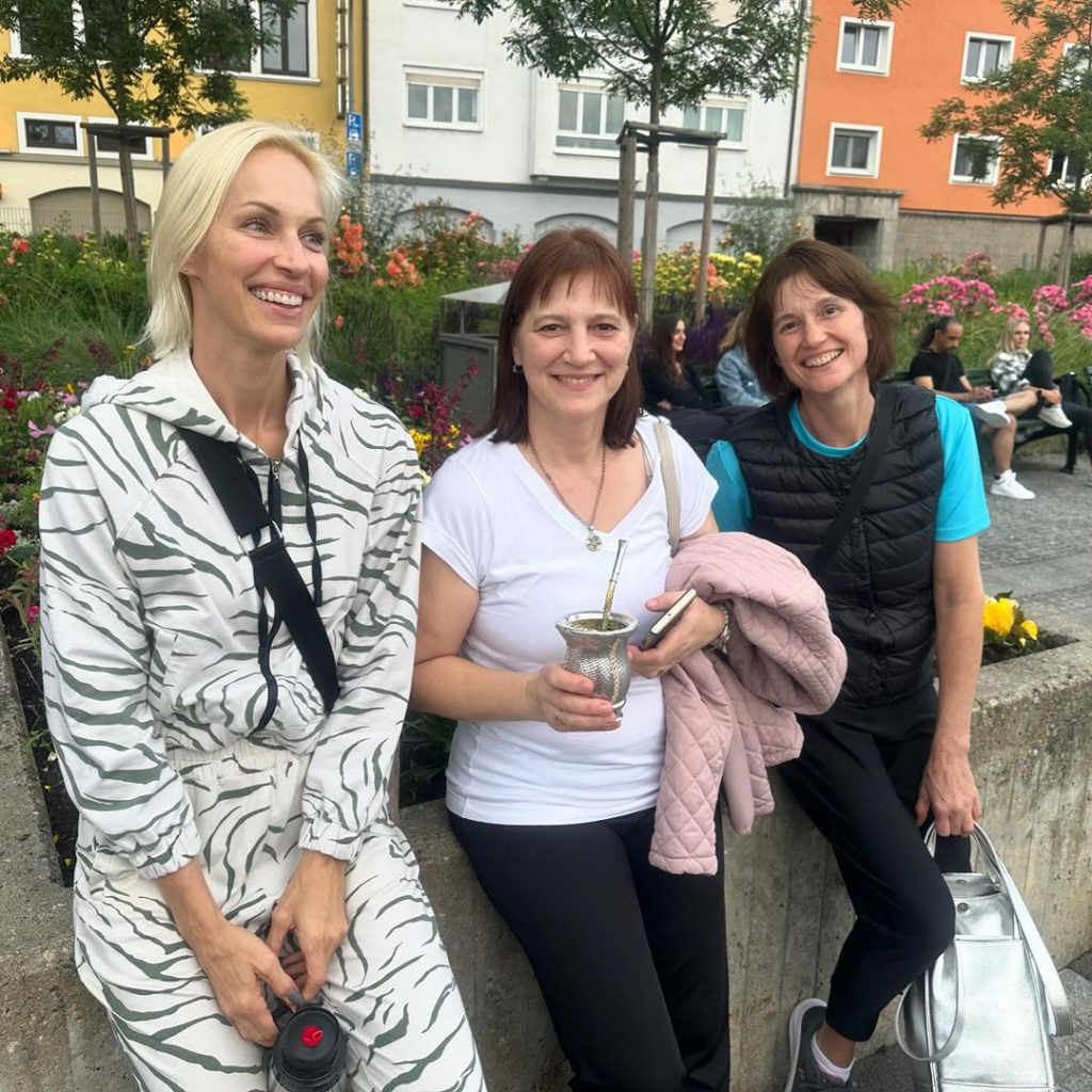 Otra imagen muestra a las tres hermanas en un entorno urbano, descansando y disfrutando de unos mates, incluso a la distancia de Argentina. Ingrid, con su estilo inconfundible, luce una prenda con estampado de cebra, mientras que sus hermanas optan por looks más casuales.