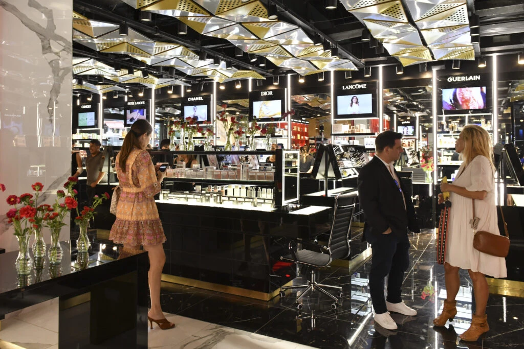 Con tres pantallas LED que adornan su fachada y la hacen destacarse entre el resto de edificios, el nuevo punto de venta de Rouge se caracteriza por su look glamoroso y elegante. Los colores negro, rojo y dorado son protagonistas en la ambientación de este espacio amplio y acogedor, que invita a descubrir cada una de las vitrinas en las que están expuestos los distintos productos de make up, cuidado de la piel y fragancias, entre otros.