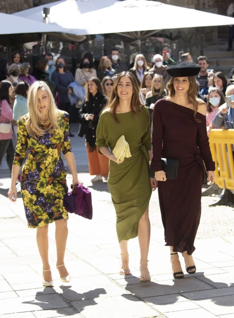 Xandra Falcó, prima del novio y actual marquesa de Mirabel, la viuda de Jaime de Carvajal se ha decantado por un vestido estampado en tonos rojizos y floreado que llevó con tocado con flores. Su hija, Isabella, llevó un vestido también con estampa floral en tonos celestes y casquete de terciopelo verde.
