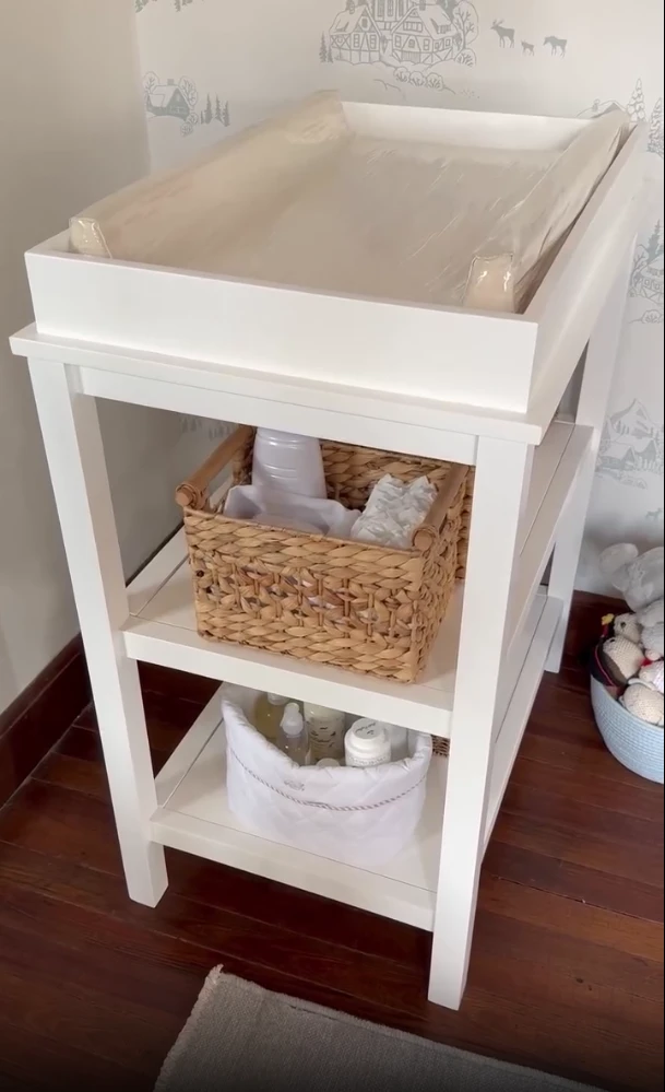 La familia también colocó bellos retratos en color blanco y negro sobre una cómoda, donde además se acomodó una lámpara. Y, en cuanto al moisés, optaron por un modelo práctico y moderno, confeccionado en tela y equipado para mecerse solo.