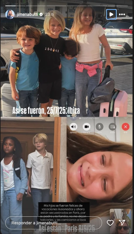 "Mis hijos se fueron felices de vacaciones ilusionados y ahora están secuestrados en París por su padre y la familia. No me dejan hablarles y les cambiaron el look”, escribió Jimena junto a imágenes del antes y después de los niños.