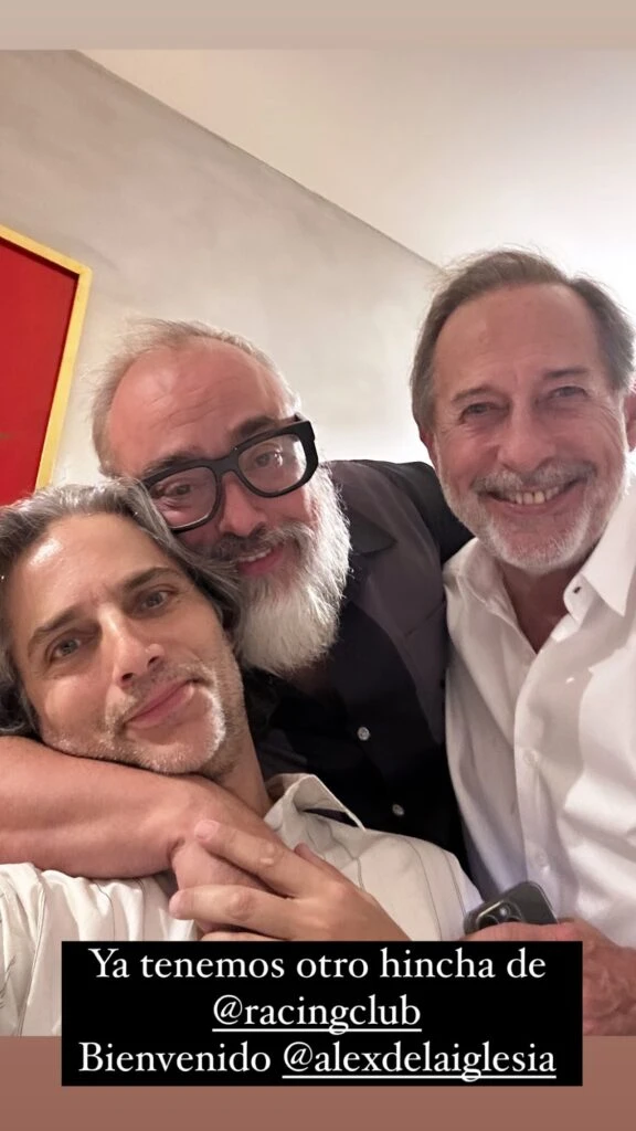 La mesa también reunió a Marcos Carnevale, Lucas Langelotti, Matías Mosteirín, Diego Andrasnik y el cineasta Álex de la Iglesia, quienes compartieron una torta rogel en un clima de risas y complicidad.