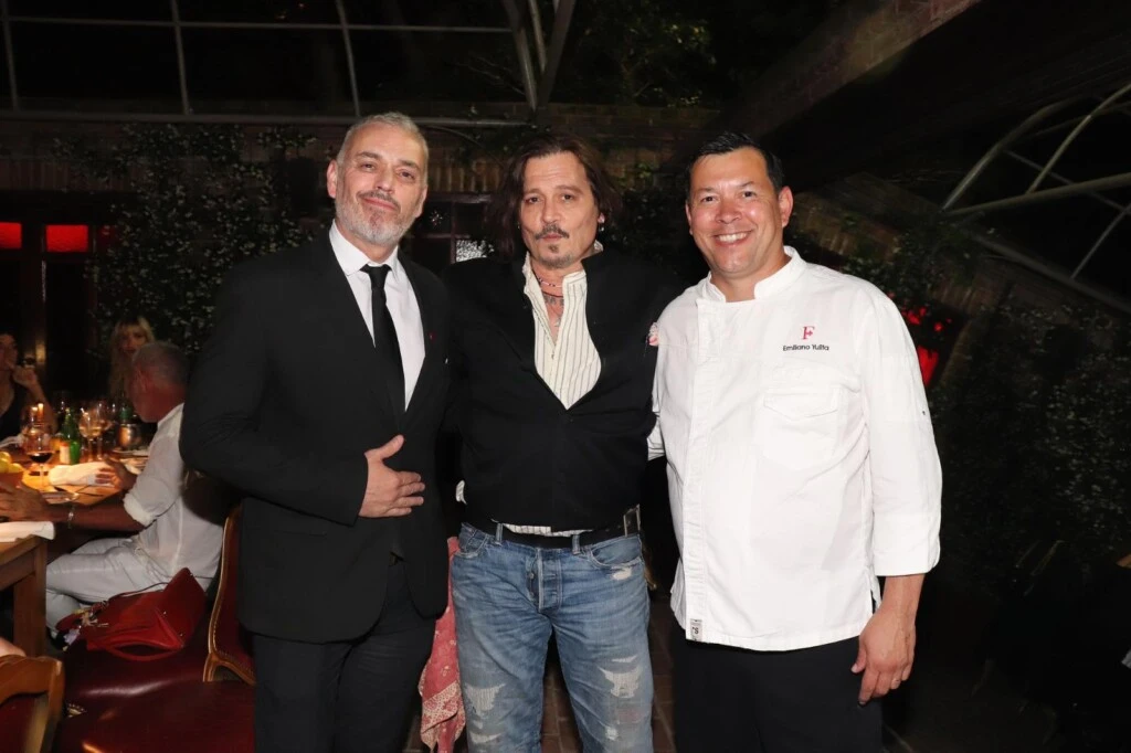 Cerca de las 22:00, Depp llegó acompañado por Jorge “Corcho” Rodríguez, y ambos fueron recibidos personalmente por Álvarez, quien los condujo hasta el restaurante El Mercado. La mesa, preparada al detalle, reflejaba la importancia del invitado y el estilo sofisticado que caracteriza los eventos del publicista: iluminación cálida, decoración elegante y un ambiente distendido que prometía una noche memorable.