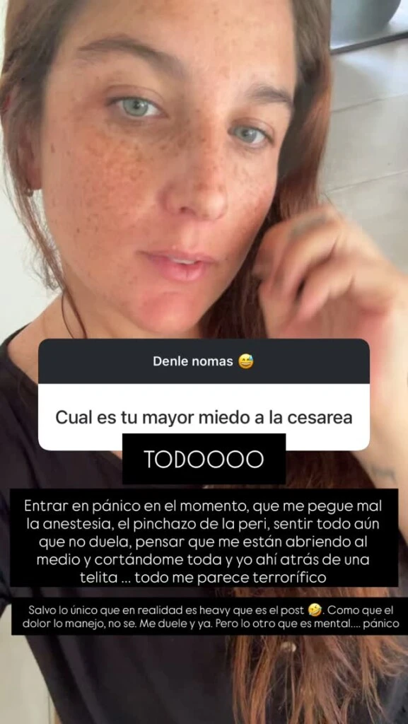 En una caja de preguntas y respuestas con sus seguidores, le consultaron cuál era su mayor miedo ahora. "Todo, entrar en pánico en el momento, el pinchazo de la peri, sentir todo aun que no me duela. Pensar que me están abriendo al medio y cortándome toda, y yo ahí detrás de una telita. Me parece terrorífico", confesó.
