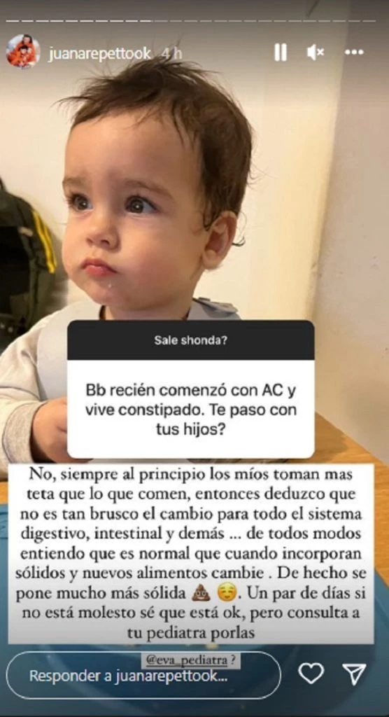 Al tiempo que, detalló que todo lo que hacía su hijo mayor siempre era "por iniciativa propia" y no por estimulación. "A los dos los senté para comer para que tengan más interés por la comida antes de que se sentaran", agregó. Siguiendo el mismo tema, Juana resaltó que tanto Toro como Belisario siempre fueron más de tomar la teta que de comer alimentos en sí.