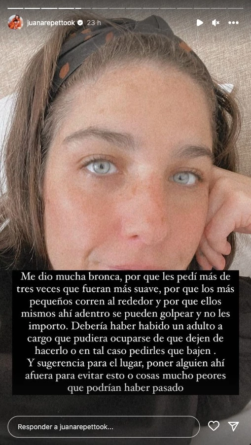 Horas después, una ola de críticas inundó a la hija de Reina Reech quien terminó haciendo su descargo en redes. Tras asegurar que sólo se trataba de una broma, Juana explicó el motivo por el cual cree que las calesitas deberían ser tomadas con más precaución, ya que pueden provocar múltiples accidentes graves.