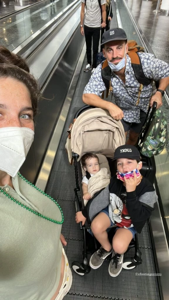 Junto a Sebastián Graviotto y sus hijos Toribio, de 5 años y Belisario, de 10 meses, Repetto tomó registro desde la subida del avión en Ezeiza hasta su llegada a destino. Durante estos primeros días, se hospedaron en un hotel con piscina junto a la playa donde disfrutaron de una jornada de sol. Y más tarde, compartieron una cena con amigos y algunos familiares.