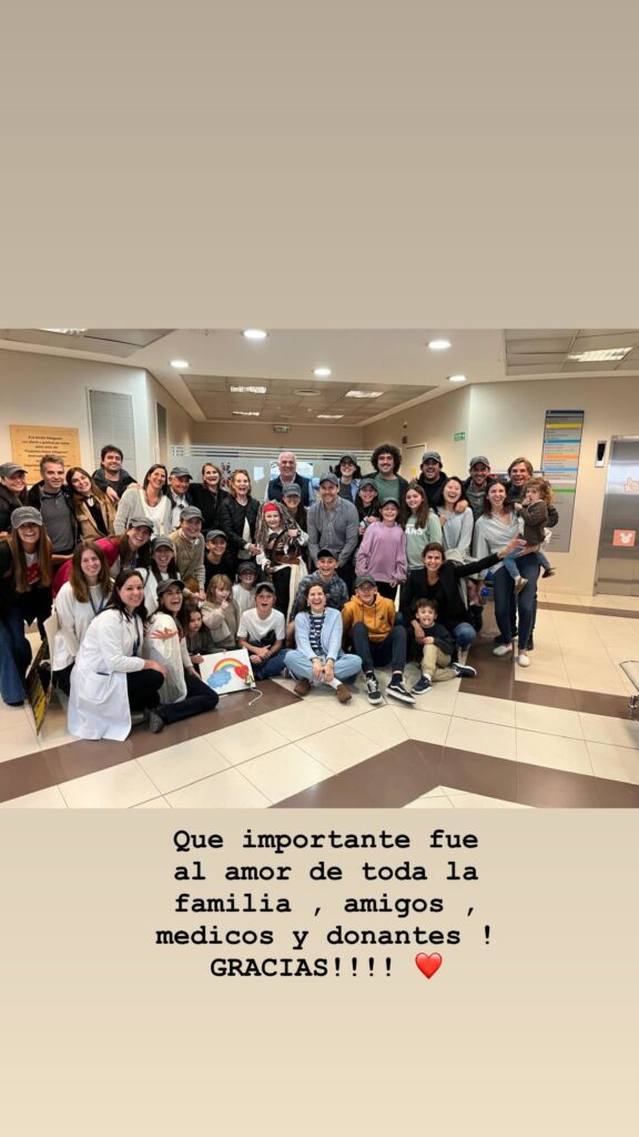La empresaria y su ahijado también posaron con la familia y el personal del Hospital Austral, donde el pequeño estuvo internado. "Que importante fue el amor de toda la familia, los amigos, médicos y donantes. Gracias!", escribió Awada en esa imagen.