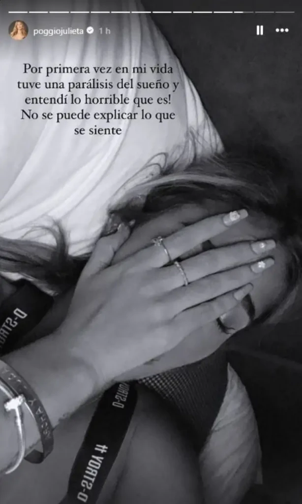 "Se me mezclaba el sueño con la realidad. Duró poco por suerte, pero fue muy real y muy raro hasta que dije ‘agarro todas mis fuerzas y me muevo para un costado y ahí me pude levantar", contó la influencer.