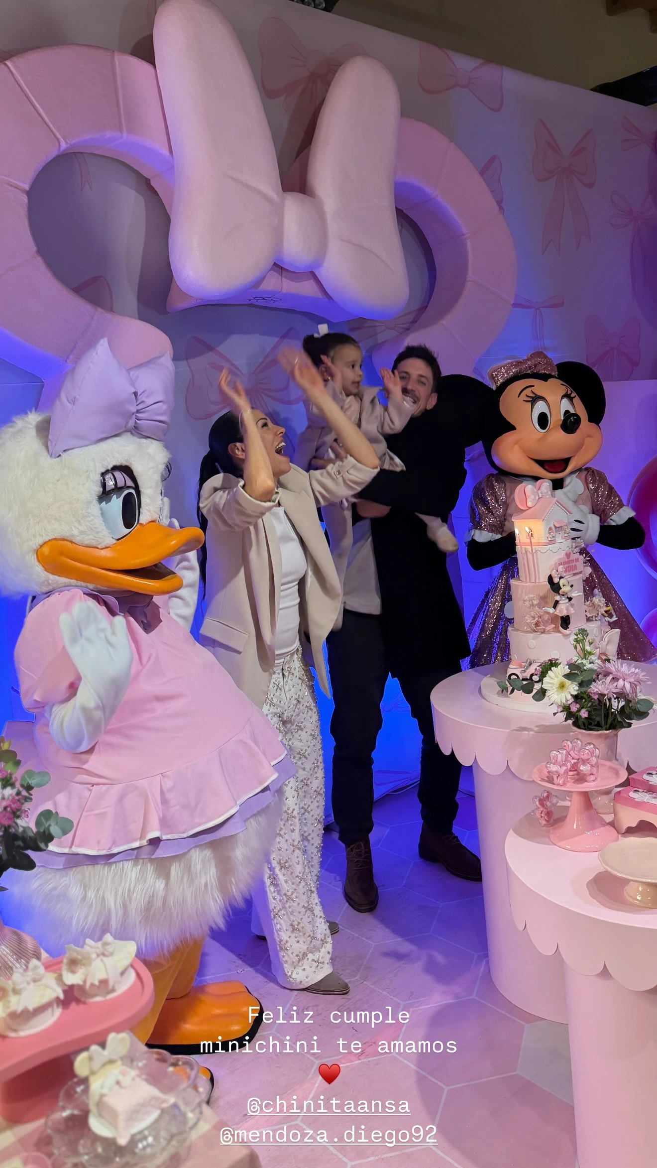 La China Ansa y Diego Mendoza celebraron este viernes 20 de junio el segundo cumpleaños de su hija India con una fiesta soñada. El festejo, que tuvo una parte al aire libre, estuvo ambientado con una temática de personajes de Disney, incluyendo la presencia de Minnie Mouse y Daisy como invitadas de honor. Todo el entorno, desde la decoración hasta la torta, siguió un estilo delicado en rosa pastel, ideal para una nena que empieza a vivir sus primeros grandes recuerdos.