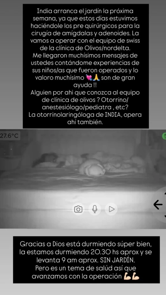 Esta decisión llevó a que todavía no comience el jardín ya que se priorizó su estado de salud. "Gracias a Dios está durmiendo súper bien, la estamos durmiendo 20.30 hs aprox y se levanta 9 am aprox. SIN JARDÍN. Pero es un tema de salud así que avanzamos con la operación", destacó la China.