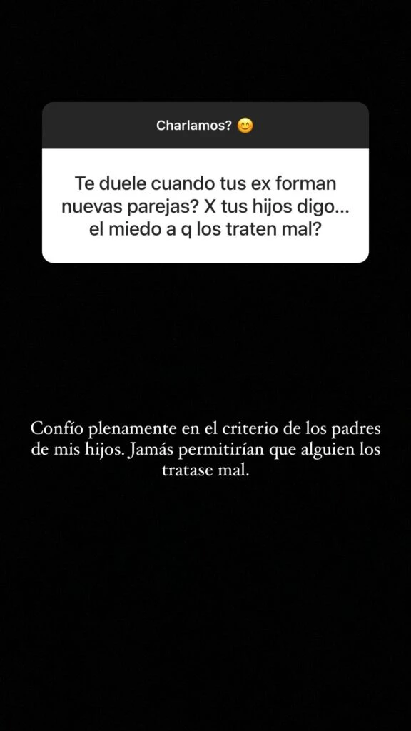 A lo que ella respondió de manera tajante. “Confío plenamente en el criterio de los padres de mis hijos. Jamás permitirían que alguien los tratase mal”, aseguró. Por otro lado, los fans quisieron saber cómo se encuentra después de su separación del músico Rusherking, con quien al parecer no hubo más diálogo.