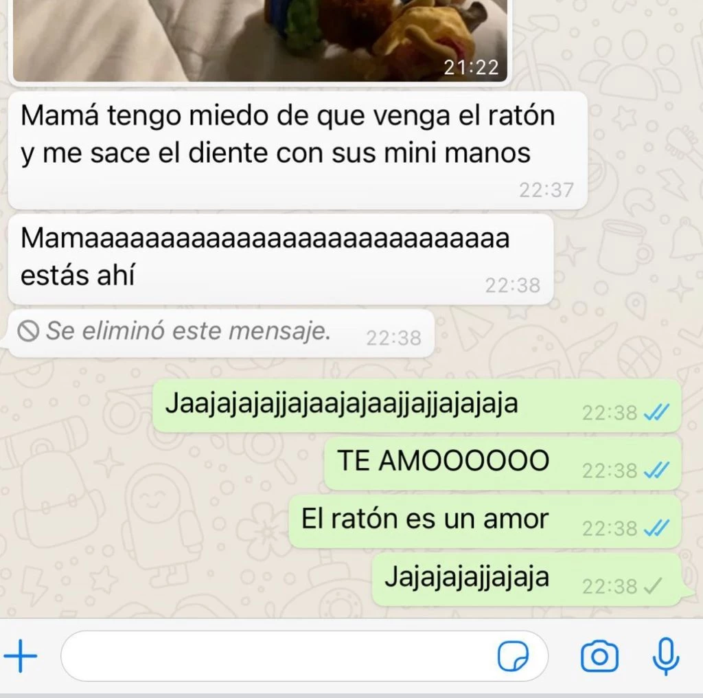 “Mamá, tengo miedo de que venga el ratón y me saque el siente con sus mini manos”, le dijo la niña a la madre a través del chat. Pasado un minuto, debido a que no recibió respuesta, insistió: “¡Mamaaaaaaaaa! ¿Estás ahí?”.