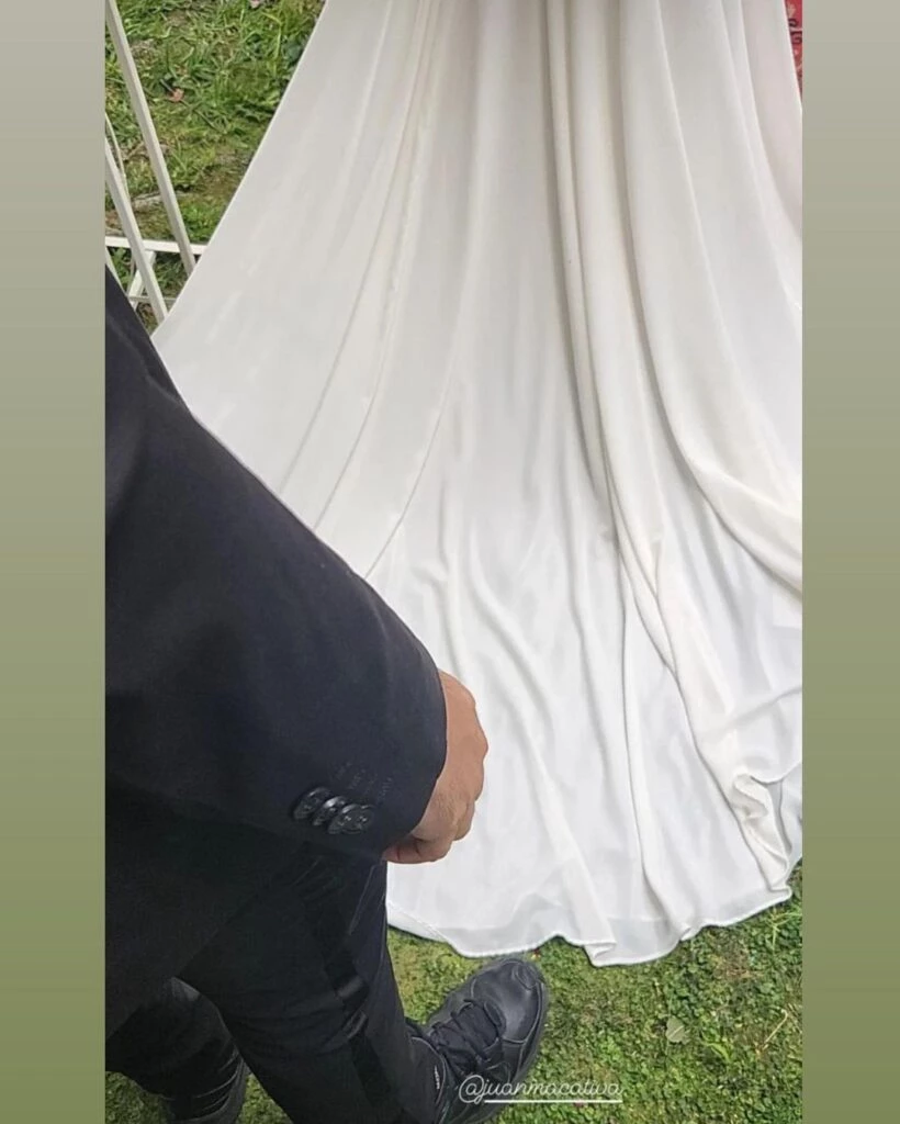 En la ceremonia, estuvieron presente además, la representante de la actriz y su hija, quienes compartieron fotos vía Instagram, Tomi Raimondi, amigo de la pareja, que se dedica a la producción fotográfica y siempre los acompaña en cada evento. Fue este último quien indicó, por medio de sus redes, que "iba a un casamiento" y que se le había manchado la camisa.