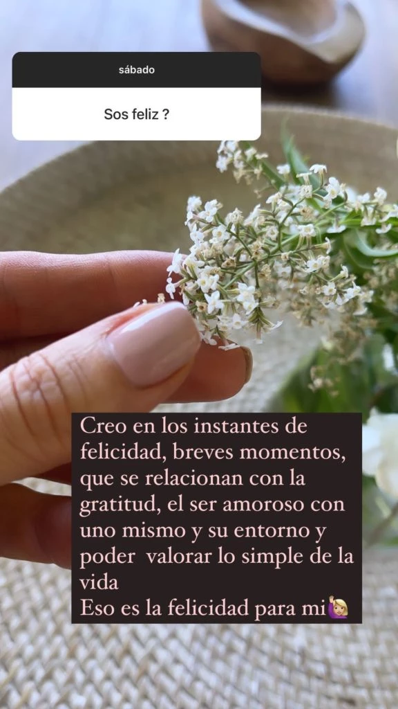 “Creo en los instantes de felicidad. Breves momentos que se relacionan con la gratitud, el ser amoroso con uno mismo, su entorno y poder valorar lo simple de la vida. Eso es la felicidad para mi”, respondió.