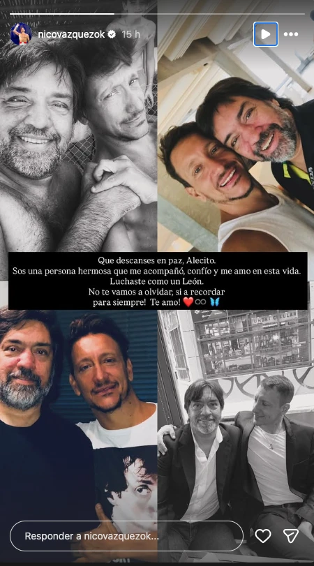 “Que descanses en paz Alecito. Sos una de las personas que me acompañó, confió y me amó en esta vida. Luchaste como un león. No te vamos a olvidar, sí a recordar para siempre. ¡Te amo!”.