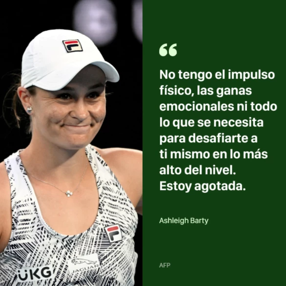 Barty fue número uno por más de dos años y se retira después de ganar tres títulos de Grand Slam: el Roland Garros 2019, Wimbledon en 2021 y el Abierto de Australia este año.