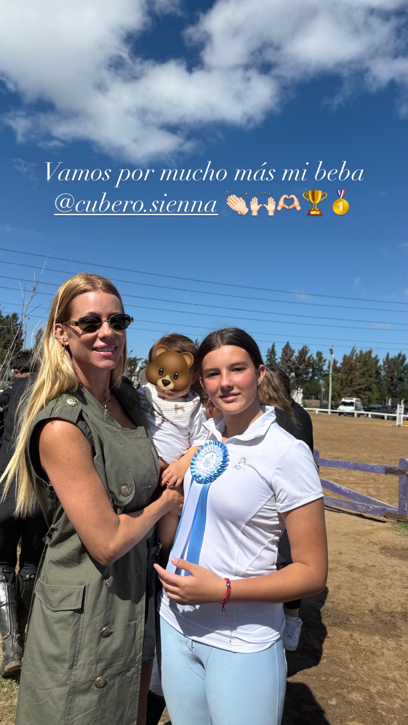 En la imagen se puede ver a Sienna con sus hermanos, sonriendo a la cámara y luciendo una cucarda celeste que se entrega a los ganadores del deporte. En otra de las fotografías, publicadas por Indiana, se la puede ver con su look compuesto por chomba blanca y pantalones de equitación celestes.