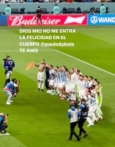 A pesar de que Dybala no pudo realizar jugadas de gol, sí se mostró feliz de estar en el campo y lo expresó por medio de sus redes sociales. "Vamos Argentina carajo, un pasito más", escribió Paulo, junto a una foto inédita del vestuario con todos sus compañeros, reflejando la alegría de todo el equipo.