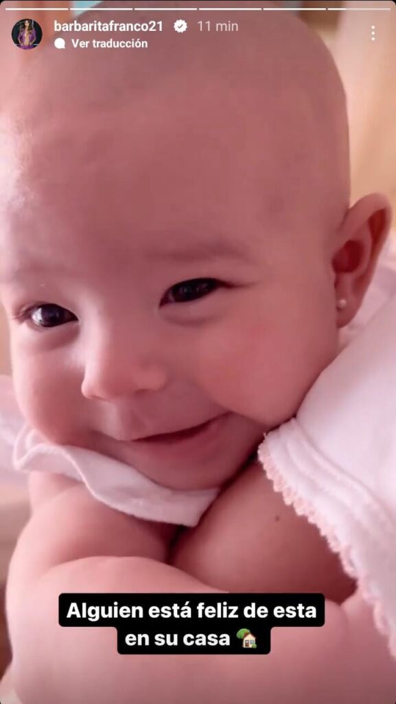 Además, en sus historias compartió una tierna foto de su pequeña durmiendo y otra de la llegada a su hogar. "Alguien está feliz de estar en su casa", escribió Barby junto a un posteo en el que se la ve a Sarah sonriendo.