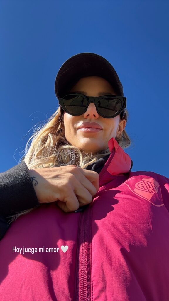 "Hoy juega mi amor🤍", escribió la modelo junto con una foto de ella en la cancha, que está ubicada en Hurlingam, ya que su primogénito se desempeña en las inferiores.