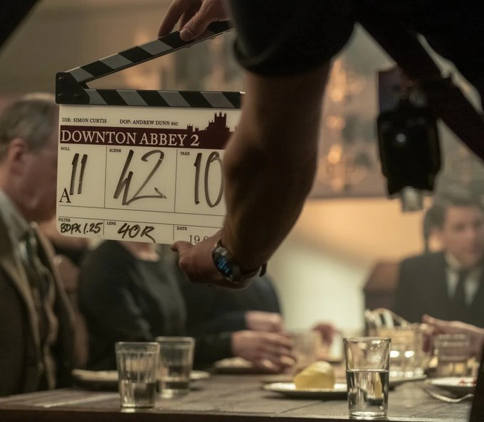 Una toma compartida por la cuenta de Twitter de Focus Features, que revela sólo el cartel de grabando frente a una escena borrosa de fondo, en la que se ven a Joseph Molesley (Kevin Doyle) y Thomas Barrow (Rob James-Collier) sirvió para emocionar a todos los fans. “Es muy bueno estar de vuelta”, fue la frase que acompañó la publicación.