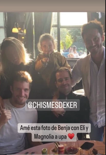 En el día de ayer, la instagramer Ker Weinstein de @chismesdeker compartió en sus historias una foto donde se ve a la feliz pareja junto a unos amigos en el hotel Four Seasons. Pero el detalle que más llamó la atención fue que Magnolia, la hija mayor que tiene el actor junto a la China Suárez, asistió con ellos y en la foto se encontraba en brazo de Eli.