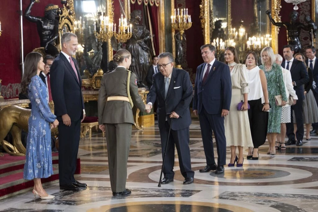Una vez terminado el desfile, Leonor y sus padres fueron al Palacio Real para realizar recepción del Día de la Hispanidad y reencontrarse con algunos miembros del estado y por primera vez, la princesa formó parte del besamanos junto a los Reyes de España. Allí, la heredera del trono recibió una gran sorpresa al recibir a algunos de sus compañeros de la Academia MIitar de Zaragoza.