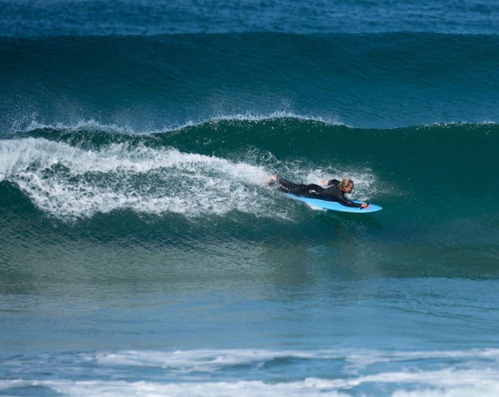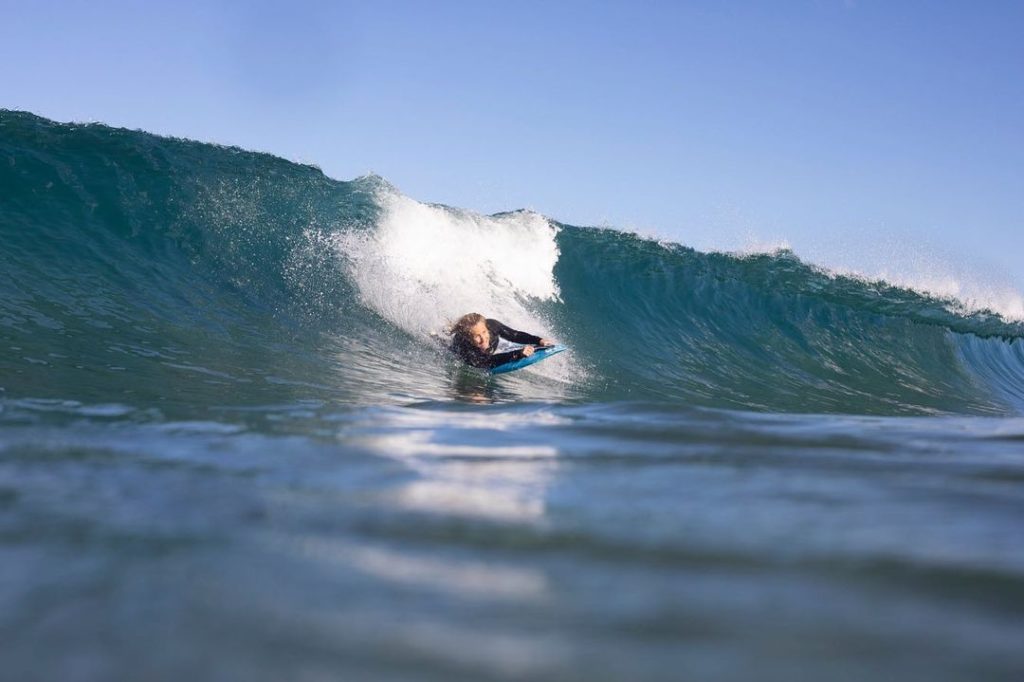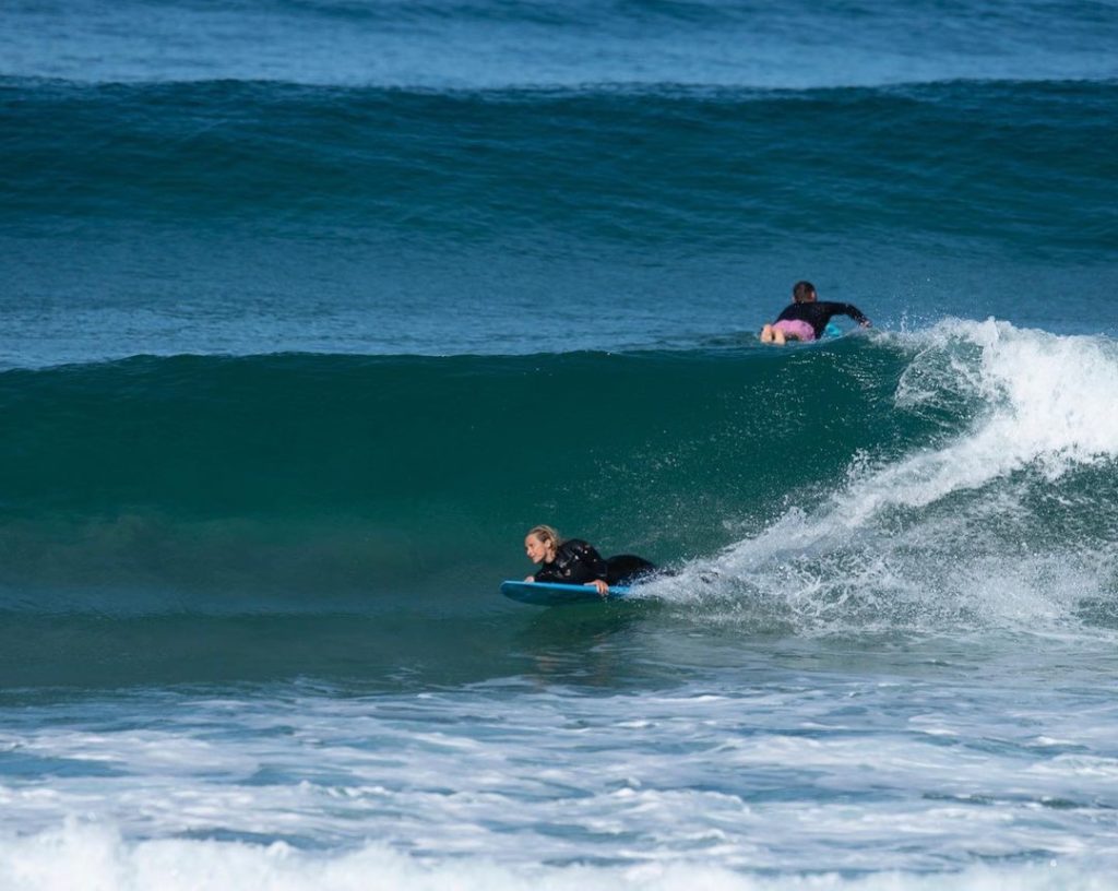 "Mi esposo, Cam, me llevó a nadar y un amigo en una tabla me decía 'vamos, Sam, sube'. Finalmente me convenció y me empujó hacia una ola. Yo estaba como, 'no, eso no es surfear'. No quería volver", cuenta. Desde chica amaba surfear olas.