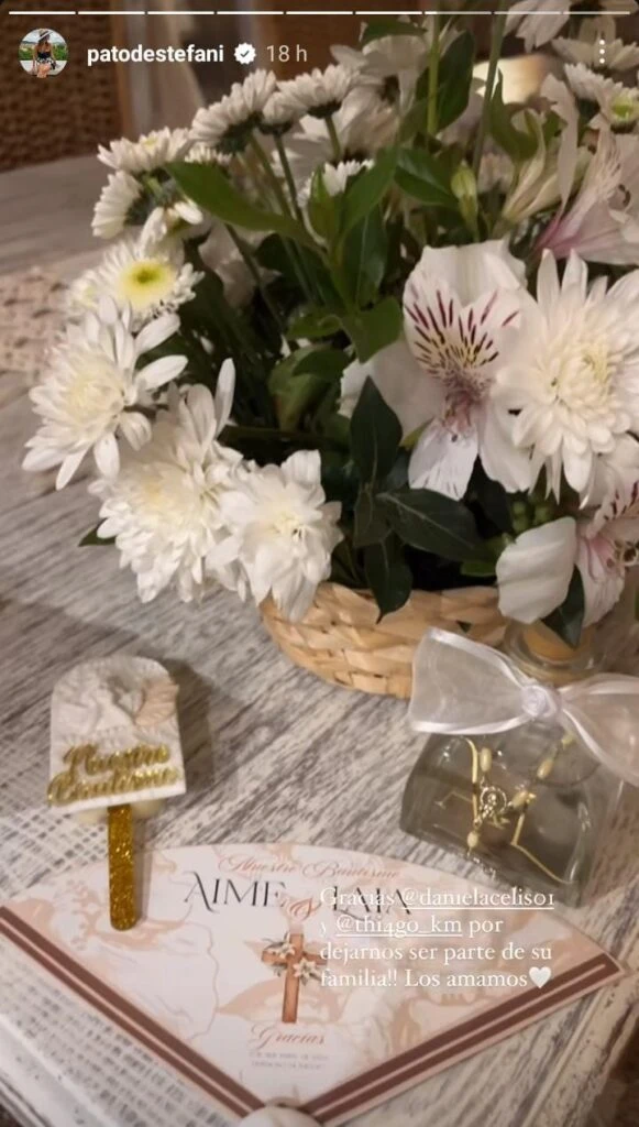 Este fin de semana, Daniela Celis y Thiago Medina vivieron un momento único: el bautismo de sus gemelas Aimé y Laia. El evento religioso se realizó en la Basílica de Luján y contó con la presencia de los padrinos Nacho Castañares y Julieta Poggio. Además, estuvieron amigos y otros familiares que no quisieron perderse esta ceremonia.