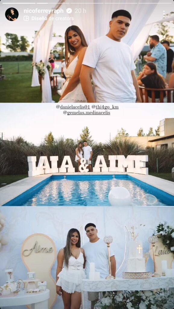 Este fin de semana, Daniela Celis y Thiago Medina vivieron un momento único: el bautismo de sus gemelas Aimé y Laia. El evento religioso se realizó en la Basílica de Luján y contó con la presencia de los padrinos Nacho Castañares y Julieta Poggio. Además, estuvieron amigos y otros familiares que no quisieron perderse esta ceremonia.