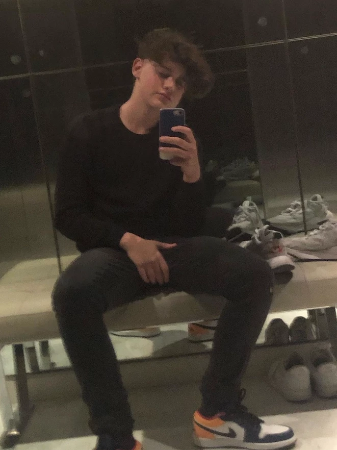 Cancherísimo y con look bien adolescente, Bautista Vicuña compartió en sus redes la foto sentado en el vestidor, frente a un espejo. Se lo puede ver con unas zapatillas Nike blancas, pero detrás de él hay varias desparramadas como la evidencia de que le costó elegir cuál ponerse.