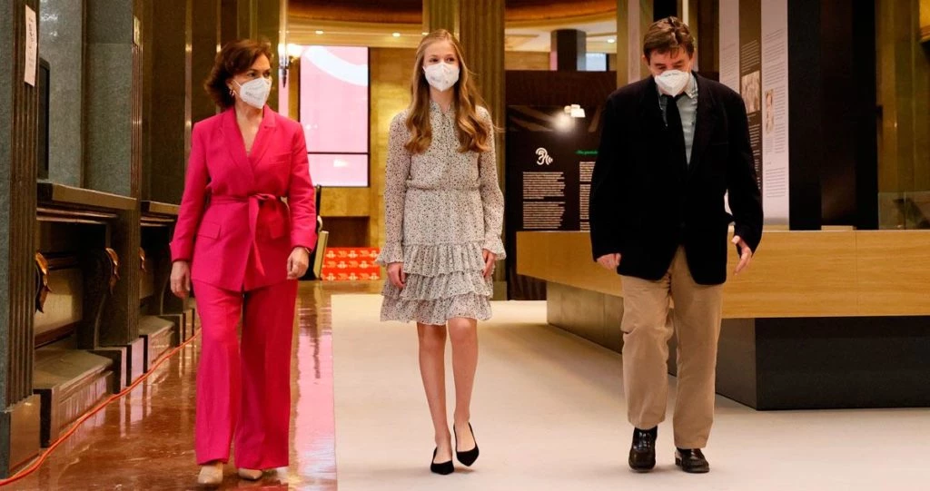 El pasado mes de marzo Leonor presidió su primer acto público en solitario con motivo de la conmemoración del XXX Aniversario del Instituto Cervantes. El acto consistió en depositar en la Caja de las Letras un ejemplar de la Constitución y otro del Quijote. No dio ningún discurso pero si hizo algunas preguntas a los trabajadores, interesándose por los que viven fuera de nuestro país.