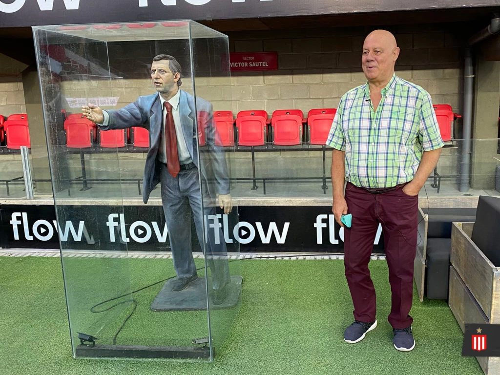 "La felicidad de Bilardo es la nuestra. ¡Qué lindo verlo así, Doctor!", reza el texto de la cuenta oficial de Twitter de la entidad deportiva de la capital bonaerense que replicó la foto este sábado. Además, mostraron una escultura con la que se le rendirá homenaje.