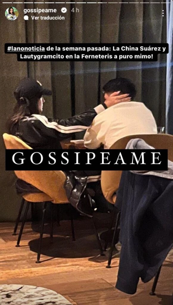 En las últimas horas, desde el portal de chimentos Gopsippeame, compartieron una fotografía que dejó en evidencia que hay algo entre ellos. "La China Suárez y Lautygramcito en La Fernetería a puro mimo", publicaron desde la red social de la cuenta.