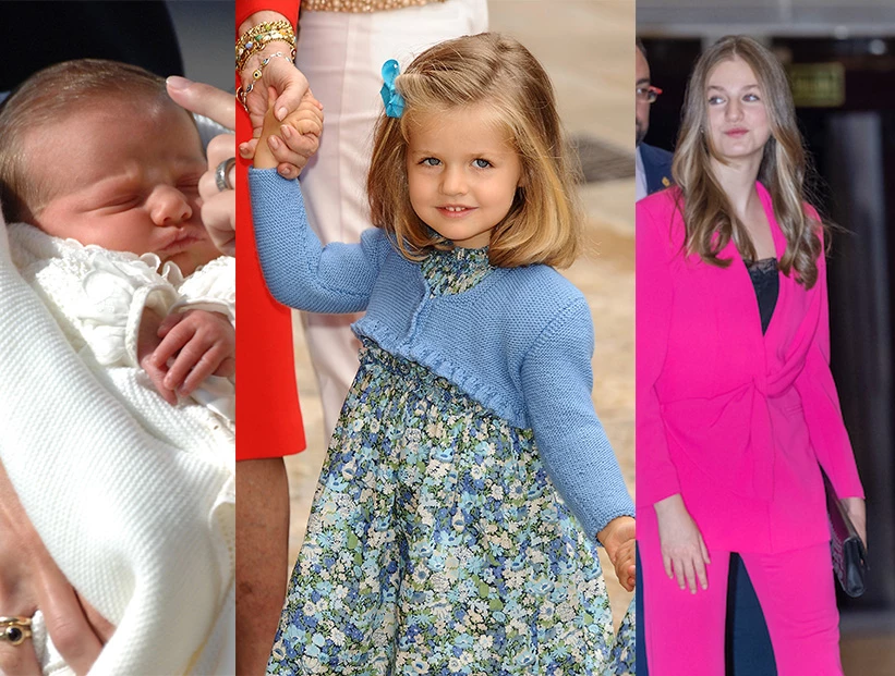 Leonor de Todos los Santos de Borbón y Ortiz nació el 31 de octubre de 2005 a las 1.46 de la madrugada. Pesó 3,540 kilos y midió 47 centímetros. Así dejaban el Centro Médico Ruber International.Leonor recién nacida.Leonor y Letizia a bordo del yate real Somni, durante la Copa del Rey, el 4 de agosto de 2007, en Mallorca.Leonor en su primer día en el jardín Royal Guard, el 7 de septiembre de 2007.Leonor en la Catedral Palma de Mallorca para la celebración del Domingo de Pascua, el 23 de marzo de 2008 en Mallorca.Letizia acompaña a su hija al primer día de clase en el Colegio Santa Maria de los Rosales, el 15 de setiembre de 2008.Leonor en la celebración de la Misa de Pascua en Palma de Mallorca, el 12 de abril de 2009.