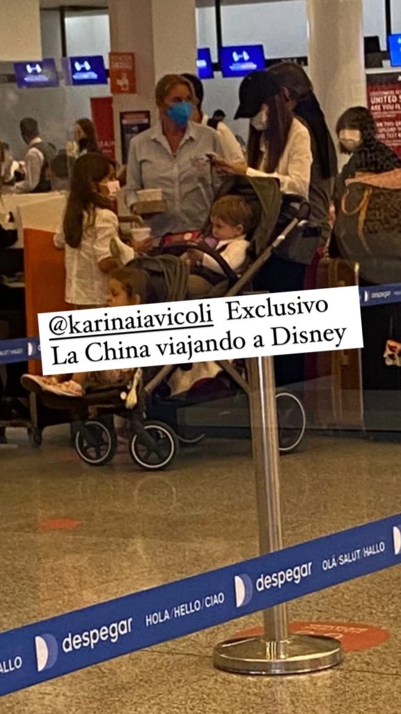 Lo llamativo fue que en el aeropuerto de Ezeiza se encontró con Benjamín ya que él se encargó de llevar a su pequeña de cuatro añitos y su bebé de un año y medio hasta el lugar para que puedan abordar el avión con su madre.