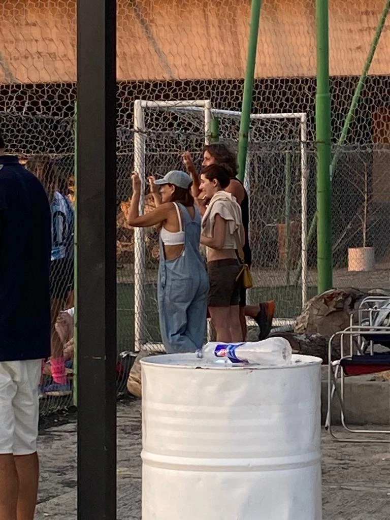 Se trató del Torneo Indiana de fútbol femenino amistoso, realizado en el Circuito KDT ubicado en el Polideportivo de Buenos Aires. La pareja se dejó ver sin inconvenientes: ella luciendo un jardinero de jean y crop top blanco, y una gorra, mientras que él usó un conjunto deportivo compuesto por musculosa y bermuda negra.