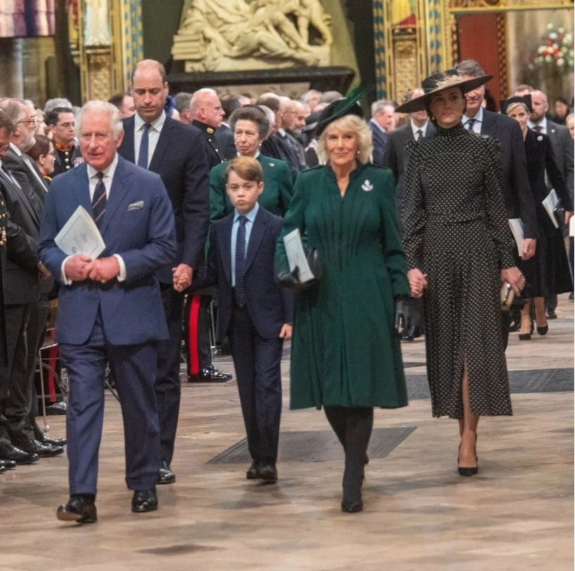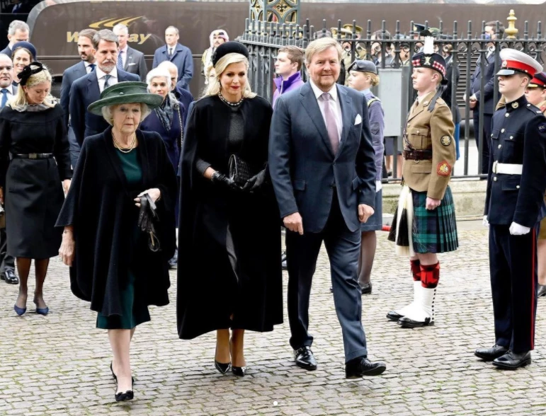 En esta oportunidad, la Reina Isabel II llegó al templo junto a su hijo Andrés y, pesar de sus problemas de movilidad, pudo levantarse cuando el protocolo lo requirió y no pudo contener las lágrimas en algún momento de la ceremonia. Varios representantes de distintas casas reales asistieron al evento.