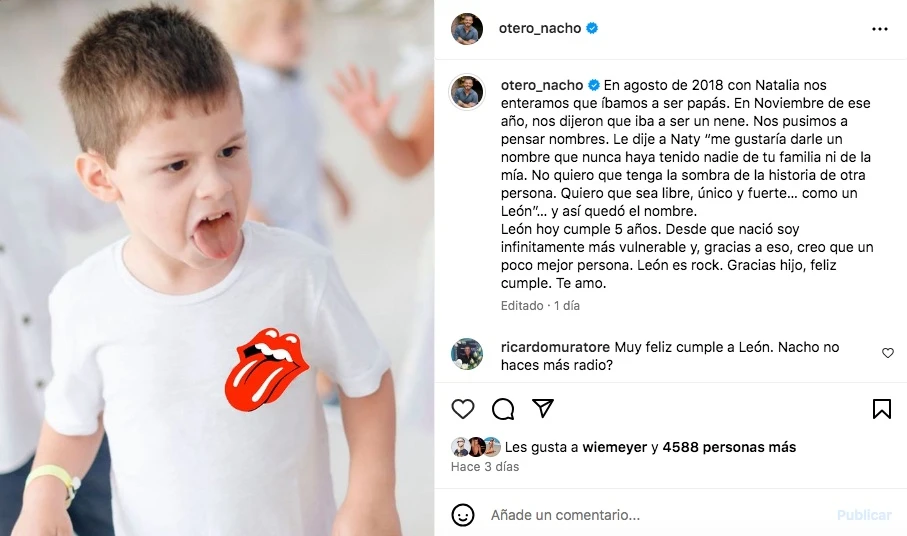 "'No quiero que tenga la sombra de la historia de otra persona. Quiero que sea libre, único y fuerte… como un León'… y así quedó el nombre. León hoy cumple 5 años. Desde que nació soy infinitamente más vulnerable y, gracias a eso, creo que un poco mejor persona. León es rock. Gracias hijo, feliz cumple. Te amo", expresó en su cuenta de Instagram.